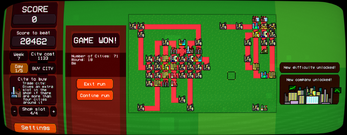 It is very important that you look into the daily shop, visible on the left and read what every city does. You can buy cities even when you do not have enough score, going into negatives, just be sure to have required points at the end of the week!